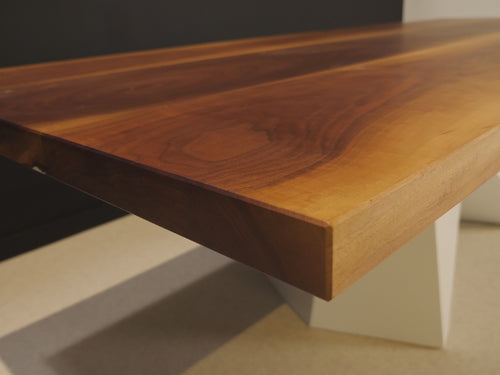 Walnut 3pieces lamination, white epoxy, white “goche” style base