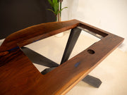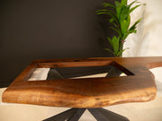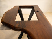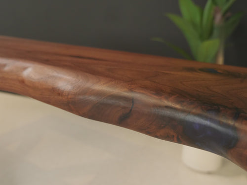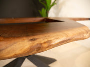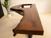 Material: walnut, one slab, 3 coats of finish material for better protection in humid and high risk of spill environment.