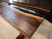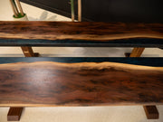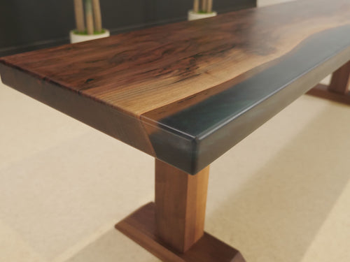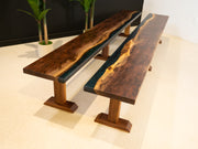 Made of unique spalted walnut, two color epoxy, walnut wood legs. Masterpiece from our shop