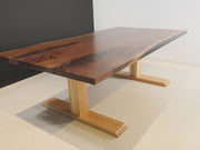 Book-matched walnut slabs, two tone of epoxy, wooden ash base